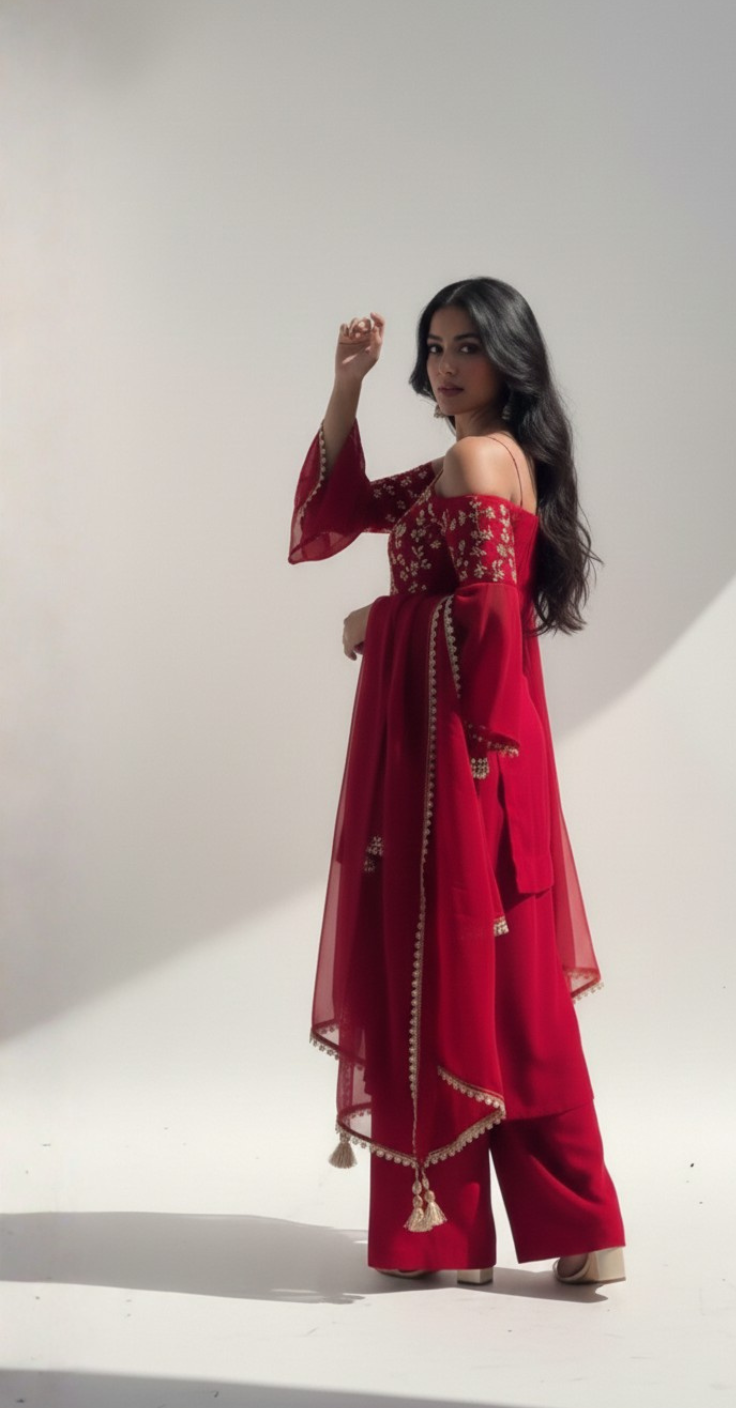 CustomerI bought the Lakshmi suite for an event, and the comments wouldn't stop. The cherry red is stunning, and the drape of the pure georgette is so fluid. It’s rare to find a brand that balances Pinterest-inspired trends with such high-end craftsmanship